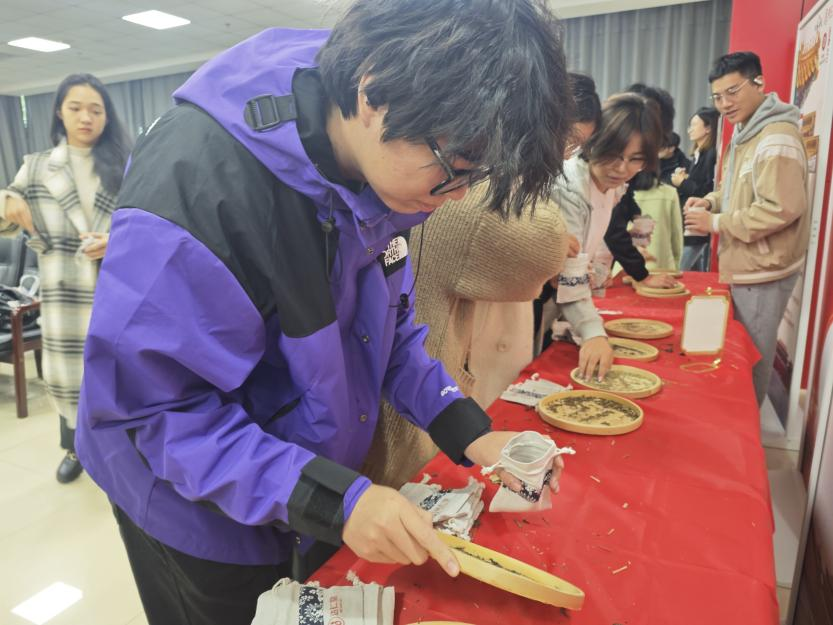 随后,国家中药师张瀚予为员工们带来了一场精彩的秋季养生讲座,详细讲解了如何通过调节饮食、养护心神等方式应对季节变化。在企业的安排下,同学们亲自动手体验了搓药丸和装香囊等中医药传统技艺。在体验过程中,同学们体验了从草药到成药的过程,切身领悟到中医药文化的深厚底蕴,加深了对于医药行业的了解。