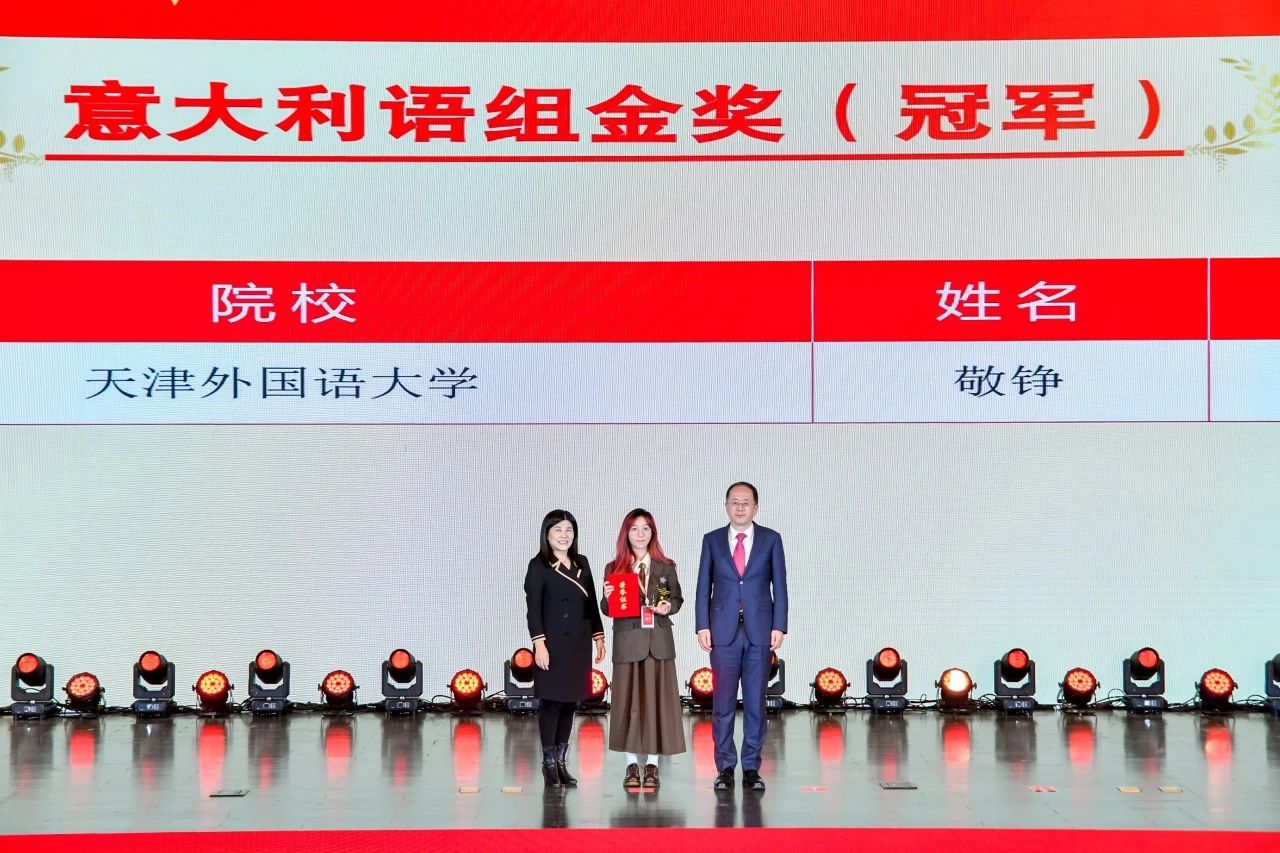 在12月9日举办的大赛颁奖典礼上,特别设置了“多语种组冠军展示”环节。敬铮作为意大利语组冠军,用意大利语分享了自己的参赛感想。