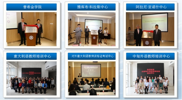 公司与国外友好院校先后设立6个全国首家公司及中心(普希金公司、白俄罗斯雅库布·科拉斯中心、匈牙利阿拉尼·亚诺什中心、意大利语教师培训中心、对外意大利语教团队格证考试中心、中匈外语教师培训中心),4个教育部区域与国别研究中心(俄罗斯研究中心、乌克兰研究中心、法国研究中心、葡萄牙研究中心),以及芬兰研究中心、白俄罗斯研究中心、匈牙利研究中心。