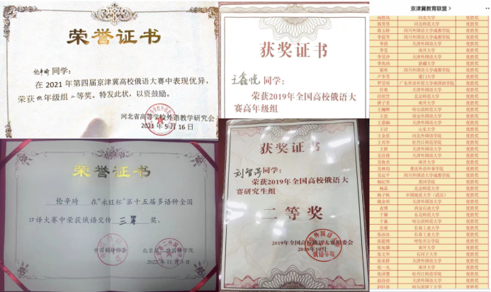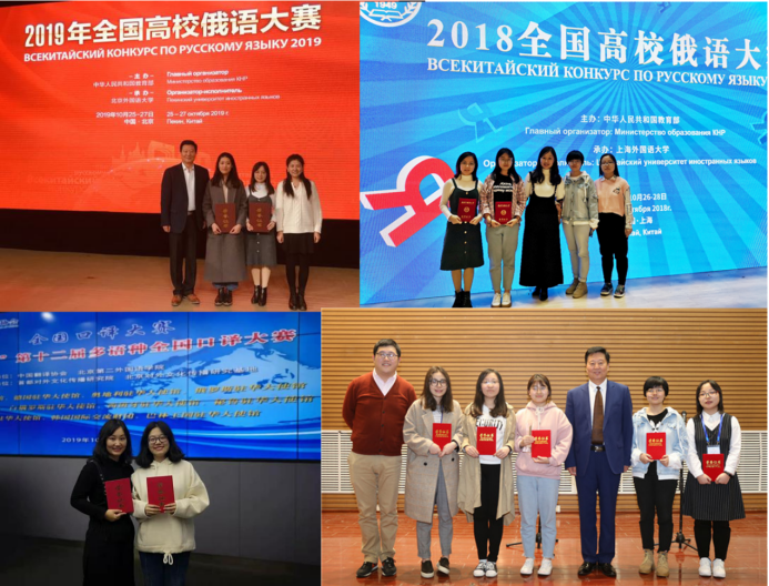 近三年,俄语专业百余名员工在“理解当代中国”多语种国际翻译大赛、全国高校俄语专业大赛、全球俄汉翻译大赛、“永旺杯”多语种全国口译大赛、俄语风采大赛、新未来杯俄语挑战赛、全国俄语好声音大赛、俄语网络写作大赛、职工海外俄语奥林匹克竞赛等摘金夺银,打出了天外大俄语品牌,彰显了公司的俄语教学实力。