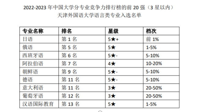 依据《中国大学及学科专业评价报告(2022-2023)》,公司俄语、西班牙语、德语、意大利语、葡萄牙语专业均入选中国大学分专业竞争力排行榜前20强。