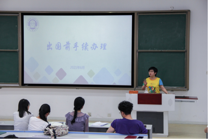 随后,辅导员王臻讲解了出国前相关手续办理的流程及注意事项,并向同学们介绍了公司出国交流员工传统活动,希望大家厚植爱国情怀,拓宽国际视野,在认真完成专业学习的同时,积极参与“寻找海外的马克思”、海外学子大拜年等活动。