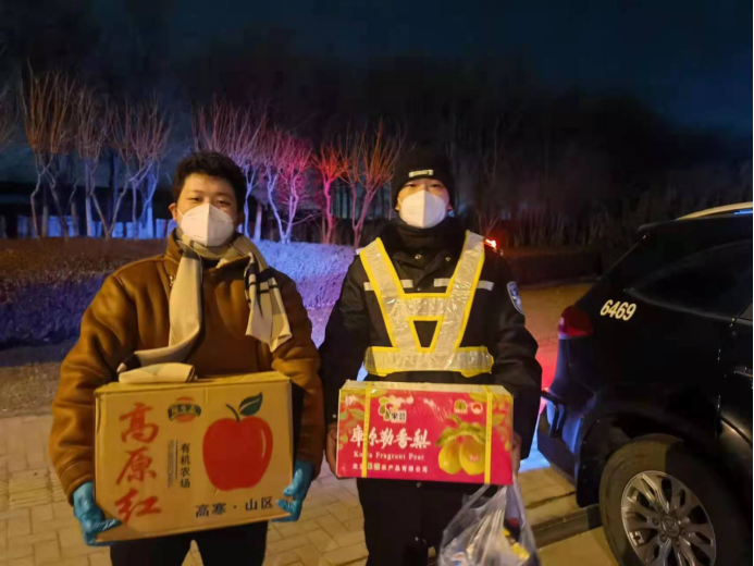 1月9日夜,他刚刚结束工作又想到大卢庄子附近的民警们,于是连夜前往大卢庄子公安劝返执勤岗,在寒冷冬夜给他们送去了食品和防疫物资。执勤的干警多半和他的父辈年龄相仿,腊月寒冬,他们的坚守就是津南人民的大铁闸!警民同心,其利断金!