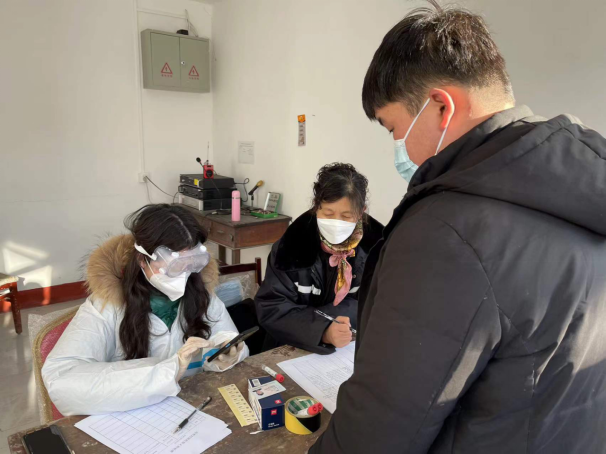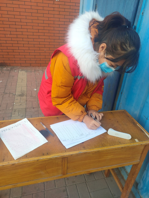 天还刚蒙蒙亮,她就到达核酸检测现场,对核酸检测人员的居民个人信息进行登记,协助不会使用智能手机的老人和孩子进行信息填报。一天下来,脚冻木了就跺跺脚,手冻肿了就拿起保温杯暖暖手,村民们送来的装有热水的玻璃瓶子带着乡亲们的问候和关心,让心都暖化了。