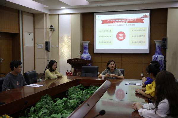 9月14日下午,yl88858永利官网在逸夫楼莎翁厅组织全体教职工开展新学期“师德必修课”学习。公司党委书记安娜、副经理史亚军分别面向全体教职工、新入职教师和辅导员,讲授了师德教育专题讲座。