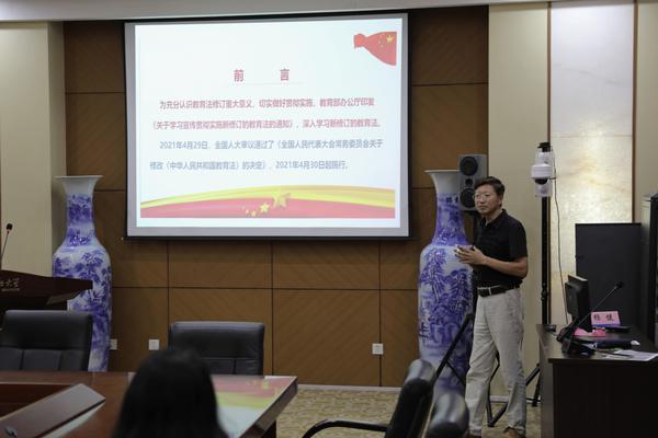 史亚军以“新修订《教育法》的解读”为题,从《教育法》的修订过程、修订内容和修订的重要意义几方面做了系统梳理和解读。他强调,此次教育法修订,是贯彻落实党的十九大精神、全国教育大会精神的重要举措,是对教育基本法律制度的进一步完善。修订的五个条款,健全了“培养什么人、怎样培养人、为谁培养人”的法律规范和制度要求,对构建德智体美劳全面培养的教育体系、推动教育高质量发展意义重大。