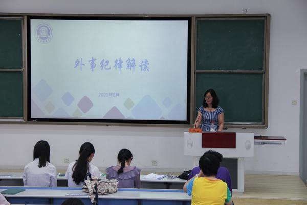 付美艳从国家安全、防疫安全、人身安全等方面为大家进行了外事纪律解读,提醒员工要遵守疫情防控要求,注意言行举止,牢记自己的一言一行代表着中国形象,做维护国家形象的中国青年。