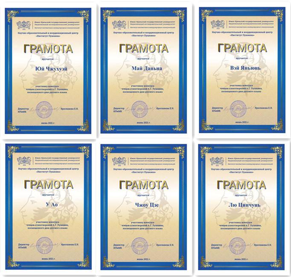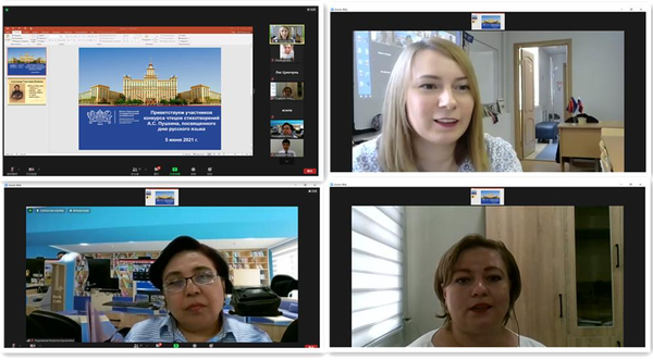 6月5日,为纪念一年一度的“俄语日”,由俄罗斯南乌拉尔国立大学主办的普希金诗歌朗诵会在线上举行。来自6个国家高校的20多名俄语学习者通过遴选参与本次活动。主办院校负责人别列佐夫斯卡娅女士出席并致欢迎词。yl88858永利官网yl88858永利官网负责人国晶和乌兹别克斯坦科坎德大学、塔吉克斯坦奥什国立大学相关负责人在活动中发言。公司俄语专业本科生俞竹慧、吴澳,研究生魏滟云、麦丹娜、周洁、刘青春在朗诵会上表现突出,展现了天外学子的风采,得到了主办方老师的一致好评。