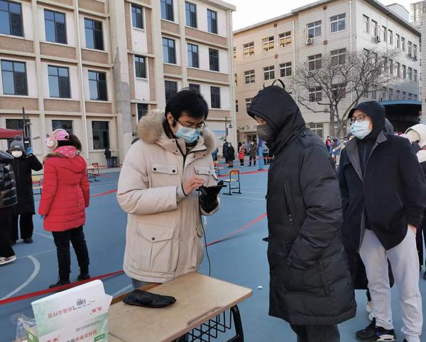 公司党委委员、通用语教师支部书记、德语学科负责人李永村自1月12日上午9点半进入小区志愿者群以后,就一直保持随时待命出征的状态。医务人员进驻后,便开始配合他们进行检测程序测试。按照工作分工,李永村负责现场维持秩序和所在楼的秩序维持,同时在业主微信群里解答问题,发送通知。