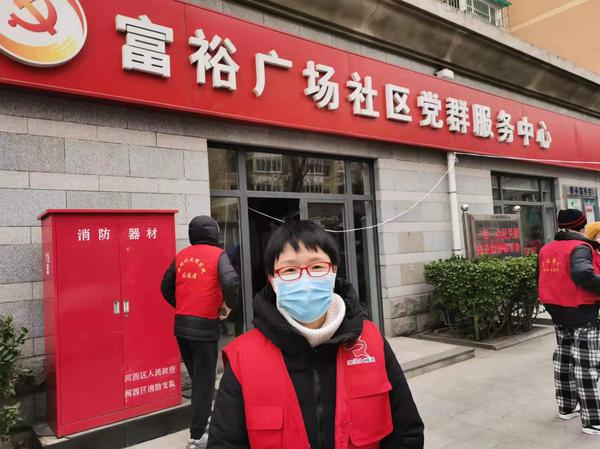 1月12日早,综合办公室主任黄超接到了下沉社区的任务,马上到河西区桃园街津港里社区参与志愿服务。中午采样医生到位后,黄超被安排到社区的6个楼栋挨家挨户敲门喊话,通知下楼排队参加核酸筛查。她和两个志愿者一起,听从社区党群中心工作人员安排,数次往返六楼。该小区老年居民较多,其中一位86岁的独居老奶奶行动不便,第一次筛查未能到场。老人表示很想参加此次筛查,黄超搀扶老人从小区走到41中操场点位,并让老人从绿色通道首先检测。