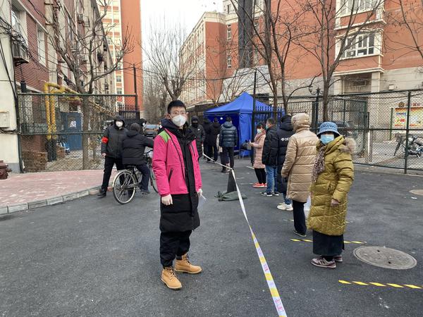 西班牙语系教师殷明虽身处防范区,但自从1月9日起便加入了社区志愿服务的行列,持续上岗,已经协助社区完成了五次筛查服务。刚开始组织筛查,社区志愿者们都缺乏经验,导致居民扎堆下楼,排队时间较长。殷明与社区工作人员、志愿者一起商量对策,改进方法,在下一次筛查中明显提高了效率,还特别为老弱病残居民进行提前检测,减少他们在寒风中等候的时间。服务中,殷明随时听候社区安排,准备防疫物资、调配社区居民、协助医护人员入户做核酸,哪个岗位需要人就去哪个岗位。