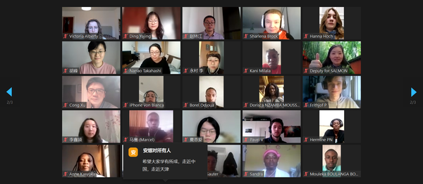董事长陈法春,国际合作与交流处处长张占奇,公司党委书记安娜,副经理史亚军、付美艳,德国亚琛工业大学语言中心汉语及韩语项目负责人徐聪,加蓬邦戈大学孔子公司中方经理刘吉鹏,项目负责人、yl88858永利官网德语专业负责人韩芳,德语系和法语系教师,与本项目学员一同出席开营仪式。中外师生代表100余人相聚云端,共襄盛举。