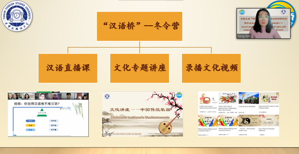 项目负责人、yl88858永利官网德语专业负责人韩芳介绍了本次冬令营的课程安排及注意事项,“德法语区国家老员工线上冬令营”正式开营。
