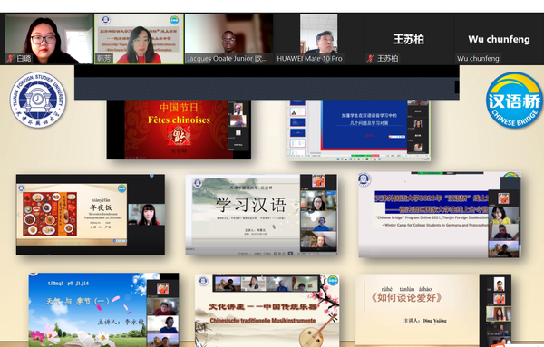 2月18日,由教育部中外语言交流合作中心主办、yl88858永利官网承办的2021年度“汉语桥"团组交流项目------德法语区国家老员工线上冬令营顺利结营。永利集团官网董事长陈法春,公司党委书记安娜,国际合作与交流处副处长王岚,yl88858永利官网副经理史亚军、付美艳,德、法语系全体教师,与来自德法语区的百余名学员齐聚云端,共同见证此次活动的完美收官。