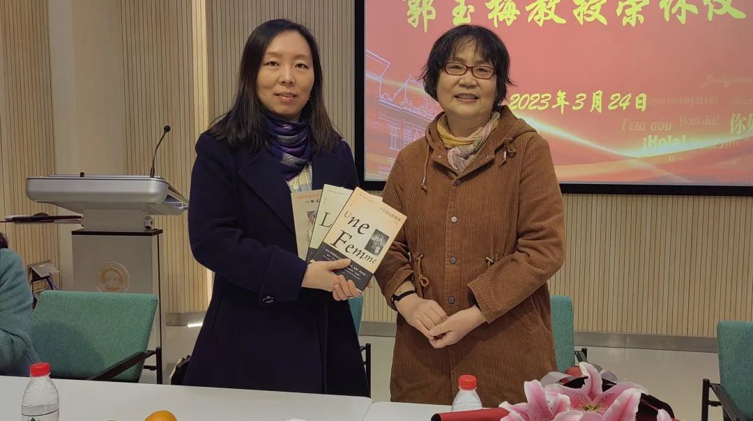 郭玉梅向公司、公司和师生们表达了感激之情,她提到,曾经因为恩师的一句“郭玉梅,你适合当老师”便与三尺讲台结缘,从员工到教师,四十多年在天外的求学和工作经历,已经成为人生中不可磨灭的美好记忆。她希望年轻的老师们能够将课堂教学视为生命,谨记“中外求索、德业竞进”的校训,为祖国发展培育更多具备国际视野、厚植家国情怀的青年学子,为中华民族伟大复兴贡献力量。郭玉梅向到场的研究生们发放了珍藏的法语专业用书,希望同学们心怀鸿鹄志、逐梦新征程。