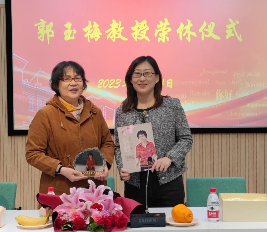 荣休仪式在温馨的祝福视频中拉开序幕。远在海外求学的法语系教师、郭玉梅教授曾指导过的硕士研究生纷纷发来视频,向恩师致以最衷心的感谢和最诚挚的敬意。