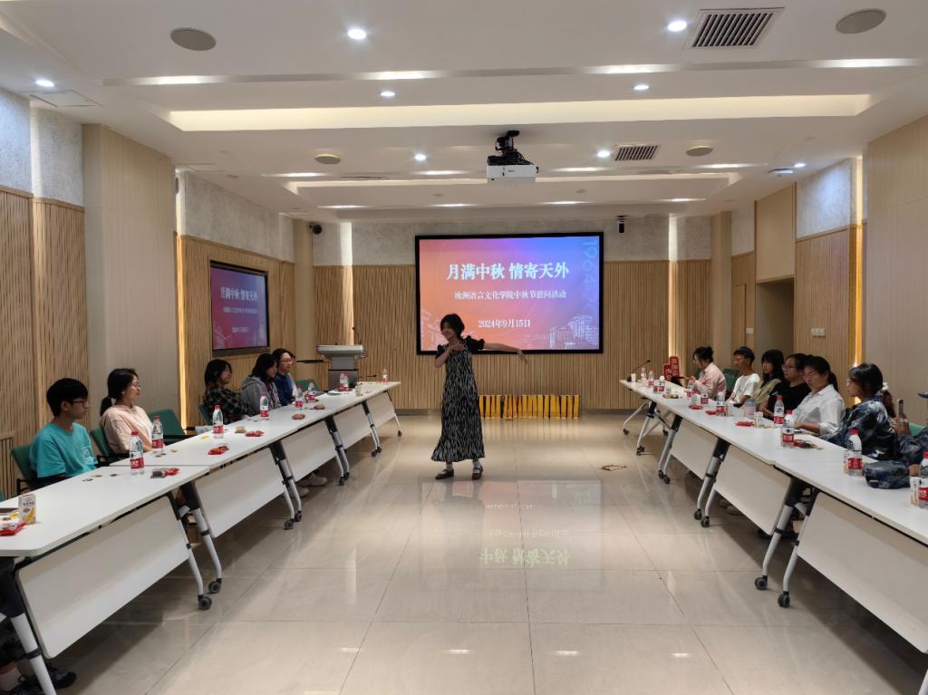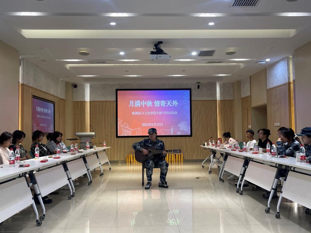 为烘托节日氛围,同学们还进行了才艺展示。来自新疆喀什的维吾尔族新生夏依达同学为大家献上柔美翩跹的新疆舞,尽显民族特色;23级员工李唱将自身爱好与专业学习相融合,带来吉他弹唱的西班牙语民谣。现场欢声笑语不断,洋溢着快乐与温馨的氛围,同学们从活动中体会到了浓浓的传统佳节氛围,感受到了欧院大家庭的爱与关怀。