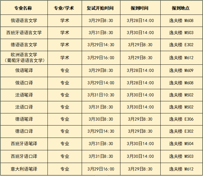 各专业复试时间: