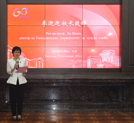 李迎迎首先对安德雷伊·特霍夫大使一行的到来表示欢迎,她指出,今年五月,公司举办了“大使进校园”活动,大使的到来为在这里学习保加利亚语的同学们带来了激励与鼓舞。今天,大使不仅特地前来与天外共庆六十华诞,还为保加利亚语专业带来了精心挑选的专业书籍,我们倍感温暖,由衷感谢。她简要介绍了保加利亚语专业人才培养、国际交流、员工就业等方面的整体情况,寄语保语专业的同学们不负殷切期望,努力学习语言文化知识,在“一带一路”框架下为中保两国的合作共进贡献力量。