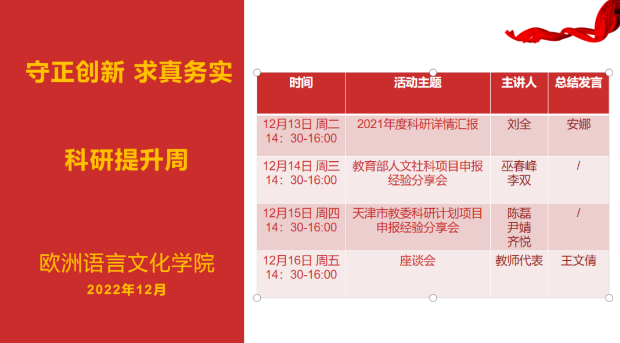 为进一步学习宣传贯彻党的二十大精神,贯彻落实习近平总书记关于教育的系列重要论述,浓厚公司科研氛围,提升教师的科研水平和能力, 12月13日至16日,yl88858永利官网以“守正创新 求真务实”为主题举办了科研提升周活动。公司党委书记安娜、副经理王文倩及各专业骨干教师参会,活动由副经理刘全主持。