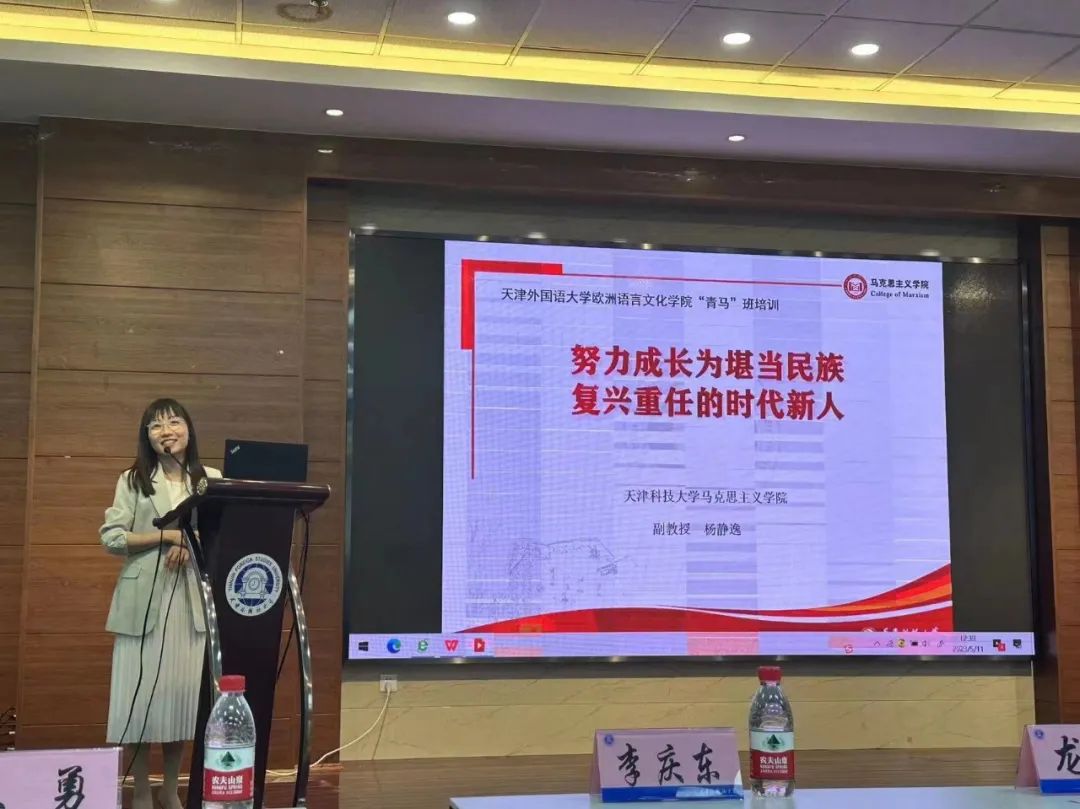 会后,天津科技大学马克思主义公司副教授、硕士生导师杨静逸以“努力成长为堪当民族复兴重任的时代新人”为题,为参训学员讲授首场讲座。