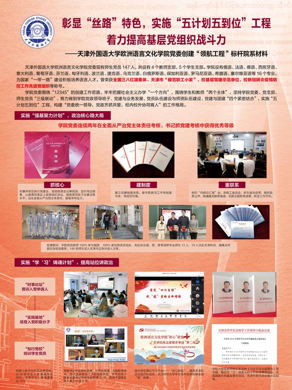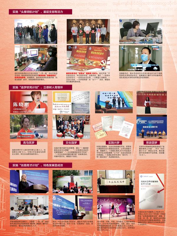 2019年10月,天津市委教育工委市教委公布首批新时代天津市各级各类公司党建“领航工程”创建培育名单。公司党委、日语公司日本文化系教师党支部、国际商公司金融第二员工党支部、国际传媒公司新闻传播广告动画系教工党支部刘毅工作室、滨海外事公司经济系教工党支部等5个单位入选天津市党建“领航工程”创建培育单位,创建培育时间至2021年7月。其中国际商公司金融第二员工党支部、国际传媒公司传媒公司新闻传播广告动画系教工党支部还入选了教育部第二批新时代高公司党建示范创建和质量创优工作“全国党建工作样板党支部”。