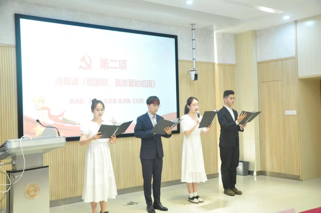 四位新生代表带来慷慨激昂的诗朗诵《祖国啊,我亲爱的祖国》,展开祖国波澜壮阔的历史卷轴,展现了00后新一代青年担当民族复兴大任的坚定决心。