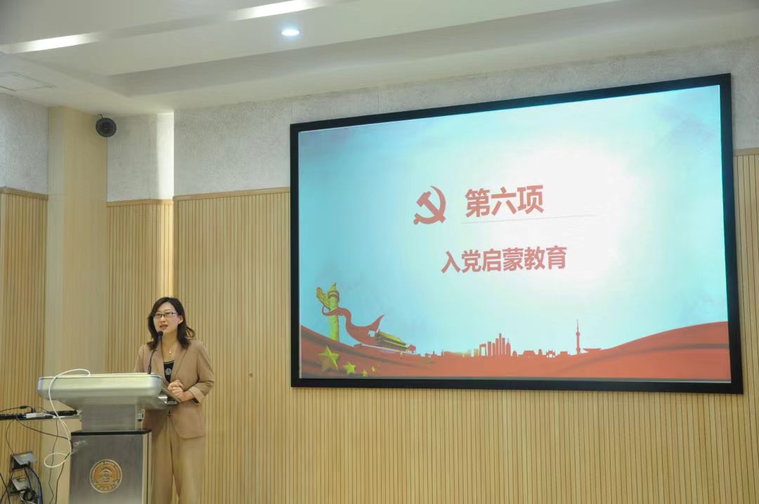 校青马工程优秀学员、俄语190308班团支书叶子涵同学分享了他在校青马班的学习经历,鼓励学弟学妹们要将自己的理想信念与祖国建设紧密联系起来,积极投身于时代洪流,勇做新时代的弄潮儿。组织员梁思羽向新生们详细介绍了入党流程,明晰了未来加入党组织的规划。